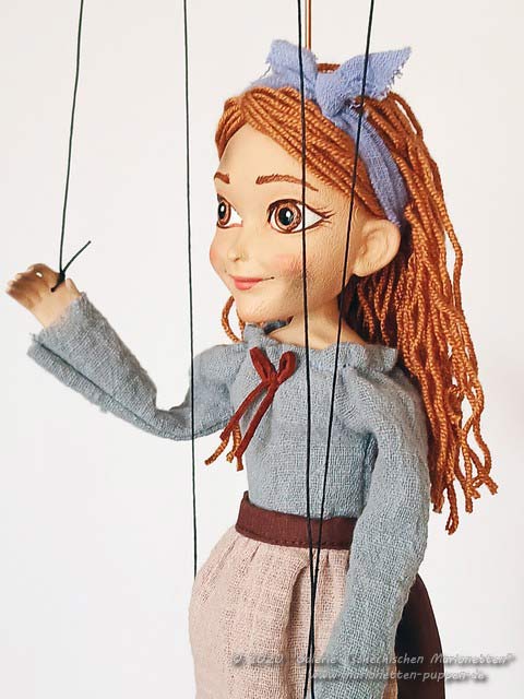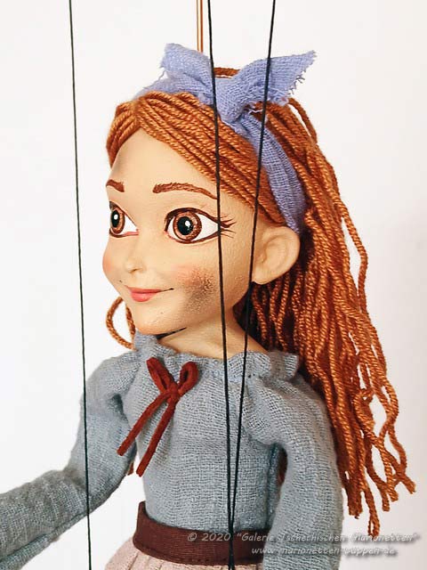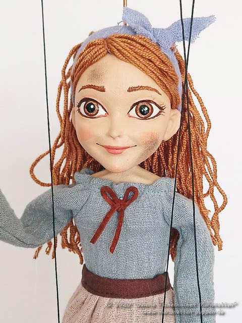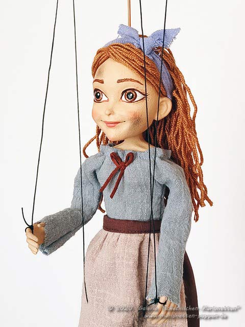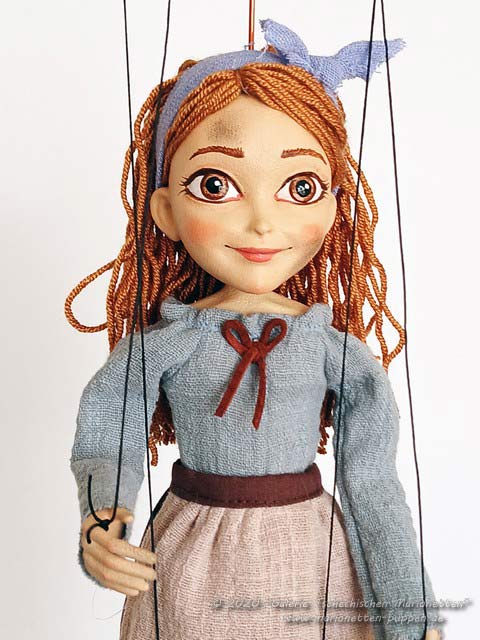Mittels einer kreuzförmigen Wippe, Metalldrähten und Fäden wird die Puppe in Bewegung versetzt. Das Steuerungssystem bietet der puppe echte Bewegungsfreiheit.Die Marionetten kann als pädagogisches Spielzeug oder als originelles Geschenk verwendet werden.