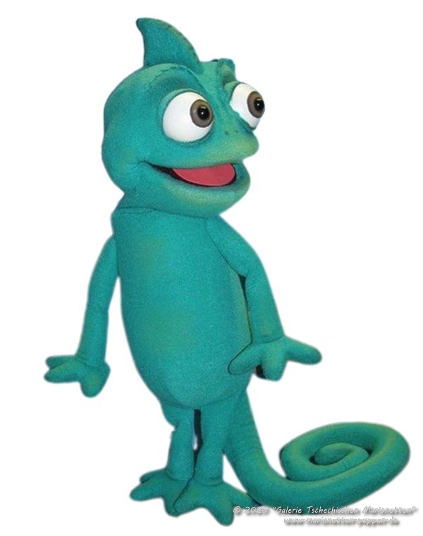 Chamäleon professionelle Gliederpuppe (Figur) eines Bauchredners. Puppe wurde aus modifiziertem Schaumstoff hergestellt und mit Wollstoff überzogen. Puppe hat einen beweglichen Mund und ein geeignetes System für Mundsteuerung. Weiche Puppe - eine für Profis ausgearbeitete Puppe von kleinem Gewicht. Marionette eines Bauchredners kann ruhig von den professionellen Puppenschauspielern, Anfängern und Kindern benutzt werden. Diese Puppe ist ein wunderschönes ungewöhnliches Geschenk, eine Handarbeit! Die Puppe wird auf Bestellung gefertigt, die Lieferzeit beträgt 2-4 Wochen.