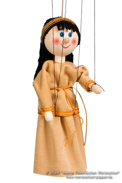 Die Marionette Desdemona ist vollständig aus Holz geschnitzt. Für die Herstellung der Marionette wurden Linden- und Kieferholz, Bienenwachs, Ölfarben, Flachsmaterial, Baumwolle und Leder benutzt. Diese Puppe ist ein ungewöhnliches originell Geschenk, eine Handarbeit!