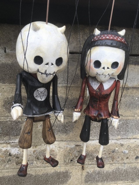 Devillie und Satanela skeletons marionetten aus holz. Die Autorenmarionette ist nach einer klassischen Technologie aus Lindenholz geschnitzt worden. Körper der Marionette wurde mit Bienenwachs und durchsichtigen Ölfarben bearbeitet, was die Holzstruktur zum Vorschein kommen lässt und die Puppe langlebig macht. Die Autorenmarionette kann als Museumsexponat benutzt werden oder einen Sammler um eine Puppe bereichern. Die Marionette wird auf Bestellung hergestellt und spätestens 4 Wochen nach Bezahlung an Ihre Adresse gesendet.