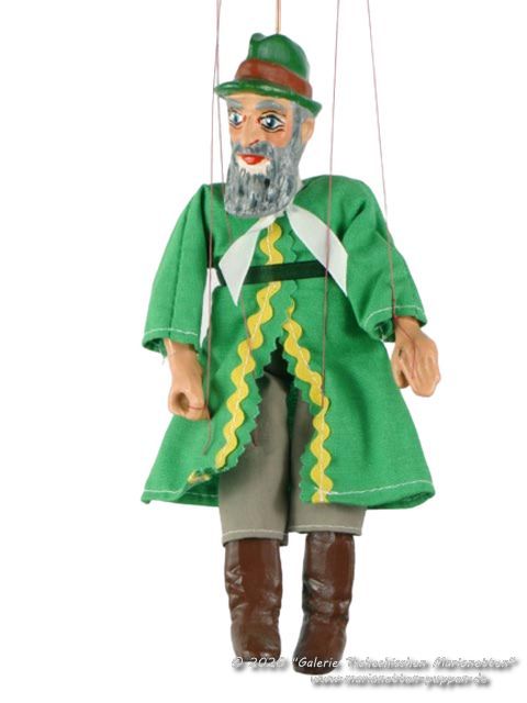 An Fäden hängende klassische tschechische Marionette wird mithilfe einer „Münsberger Rolle“ in Bewegung gebracht. Die handgemachten Marionetten sind in kleinen Serien nach einer traditionellen Technologie hergestellt. Kopf, Beine und Arme sind aus modifiziertem Bildhauergips gegossen, und der Körper aus Lindenholz gefertigt. Formgestaltung der Puppe sowie die Kleidung sind im Stile historischer Marionetten hergestellt. Marionetten sind mit einem unschädlichen wasserdichten Farbstoff, der für Kinderspielzeuge geeignet ist, von Hand gefärbt. Die Puppen können auch als Lernspielzeuge für Kinder von 6 Jahren oder als außergewöhnliche Souvenirs aus Tschechien, oder originelle Geschenke benutzt werden.