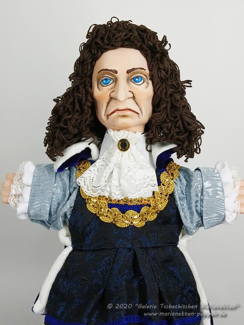 Wird über die Hand gezogen und mithilfe von Fingern bedient. Kopf der Handpuppe ist aus Holz, Körper aus unterschiedlichen Textilien hergestellt. Wird fürs Spielen im Haustheater und als Lernspielzeug für Kinder benutzt. Diese Handpuppe ist ein ungewöhnliches Geschenk, eine Handarbeit!