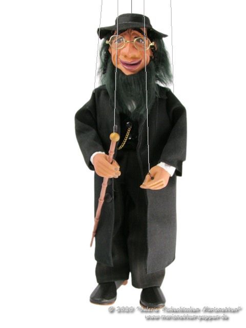 Rabbiner dekorative tschechische Gliederpuppe wird mithilfe von Fäden und einem besonderen kreuzartigen Waagebalken (Waage) betätigt. Körper der Marionette, sowie Beine und Schuhe sind aus Holz hergestellt. Kopf und Arme der Marionette sind aus spezieller Masse, die bei der Bildhauerei benutzt wird, hergestellt. Kleider sind aus unterschiedlichen Textilien, Naturstoff, Flachsmaterial, Baumwolle und Leder gefertigt. Puppe ist mit unschädlichen wasserdichten Farbstoffen von Hand gefärbt. Diese Puppe ist ein ungewöhnliches Geschenk, eine Handarbeit!