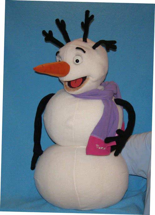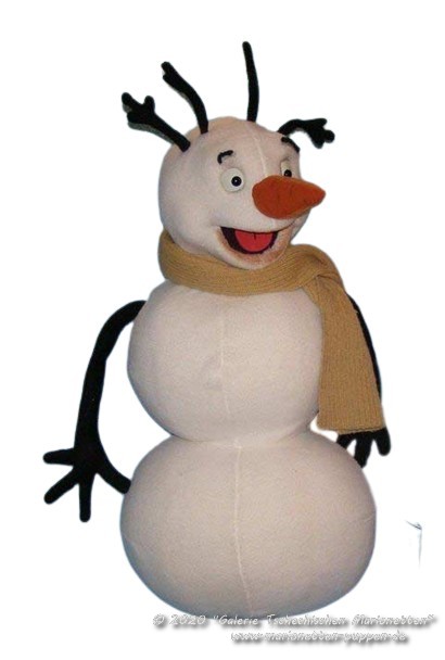Schneemann eine professionelle Klappmaulpuppe (Figur) eines Bauchredners. Puppe wurde aus modifiziertem Schaumstoff hergestellt und mit Wollstoff überzogen. Puppe hat einen beweglichen Mund und ein geeignetes System für Mundsteuerung. Weiche Puppe - eine für Profis ausgearbeitete Puppe von kleinem Gewicht. Marionette eines Bauchredners kann ruhig von den professionellen Puppenschauspielern, Anfängern und Kindern benutzt werden. Diese Puppe ist ein wunderschönes ungewöhnliches Geschenk, eine Handarbeit! Die Puppe wird auf Bestellung gefertigt, die Lieferzeit beträgt 2-4 Wochen.