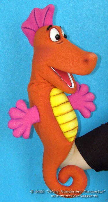 Seepferdchen professionelle Gliederpuppe (Figur) eines Bauchredners. Puppe wurde aus modifiziertem Schaumstoff hergestellt und mit Wollstoff überzogen. Puppe hat einen beweglichen Mund und ein geeignetes System für Mundsteuerung. Weiche Puppe - eine für Profis ausgearbeitete Puppe von kleinem Gewicht. Marionette eines Bauchredners kann ruhig von den professionellen Puppenschauspielern, Anfängern und Kindern benutzt werden. Diese Puppe ist ein wunderschönes ungewöhnliches Geschenk, eine Handarbeit! Die Puppe wird auf Bestellung gefertigt, die Lieferzeit beträgt 2-4 Wochen.