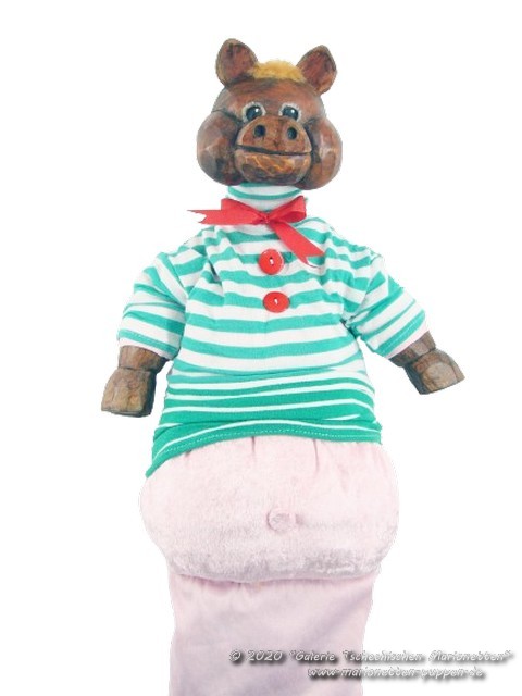 Kopf der Handpuppe ist aus Holz, Körper aus unterschiedlichen Textilien hergestellt. Wird fürs Spielen im Haustheater und als Lernspielzeug für Kinder benutzt. Für puppeteers, Puppentheater, Familie, Souvenir, professionell handpuppe.