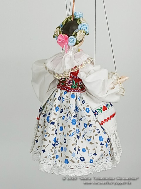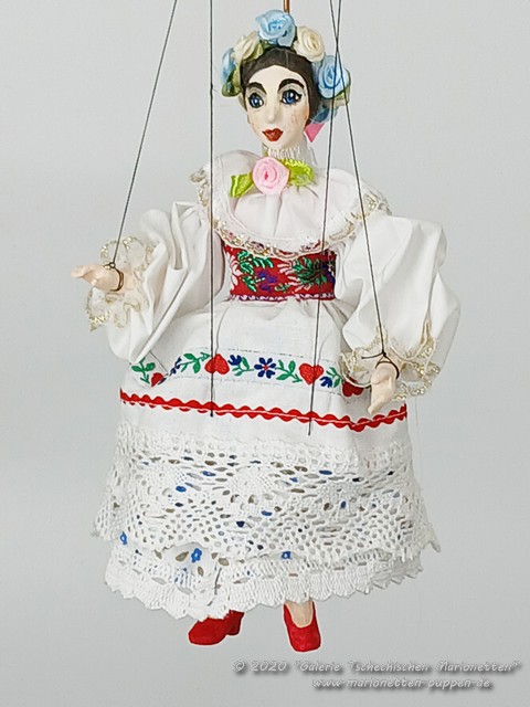 Eva Marionette in Volkstracht | Marionette in Landestracht, tschechische marionette mit Fadenhandführung und Wippe.
